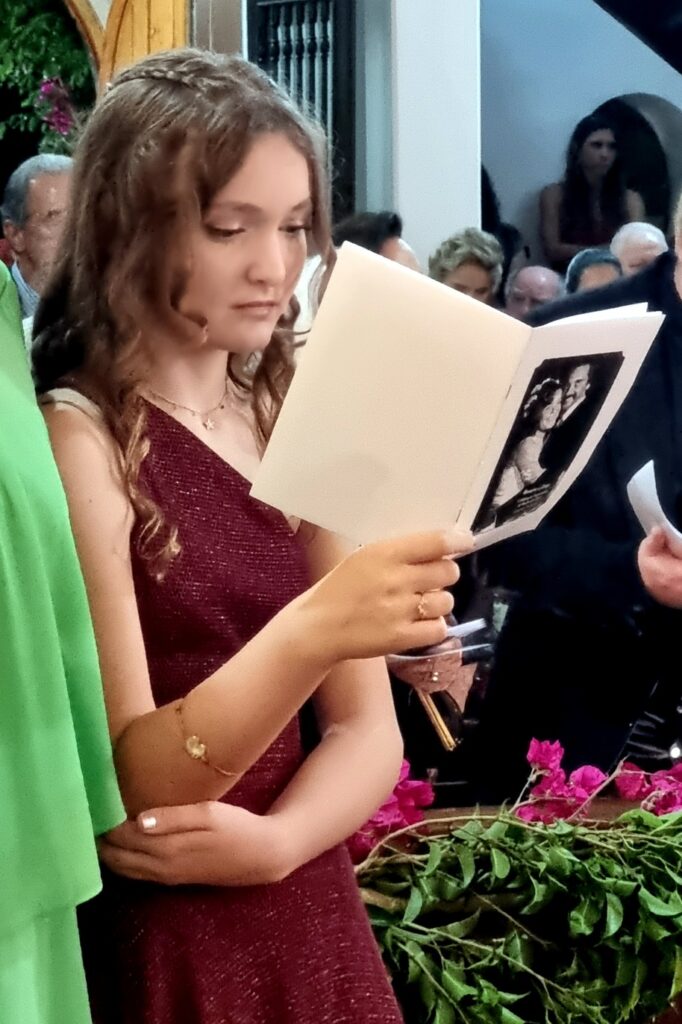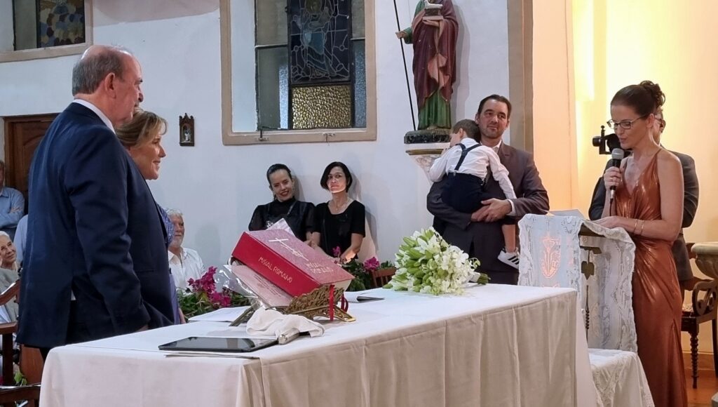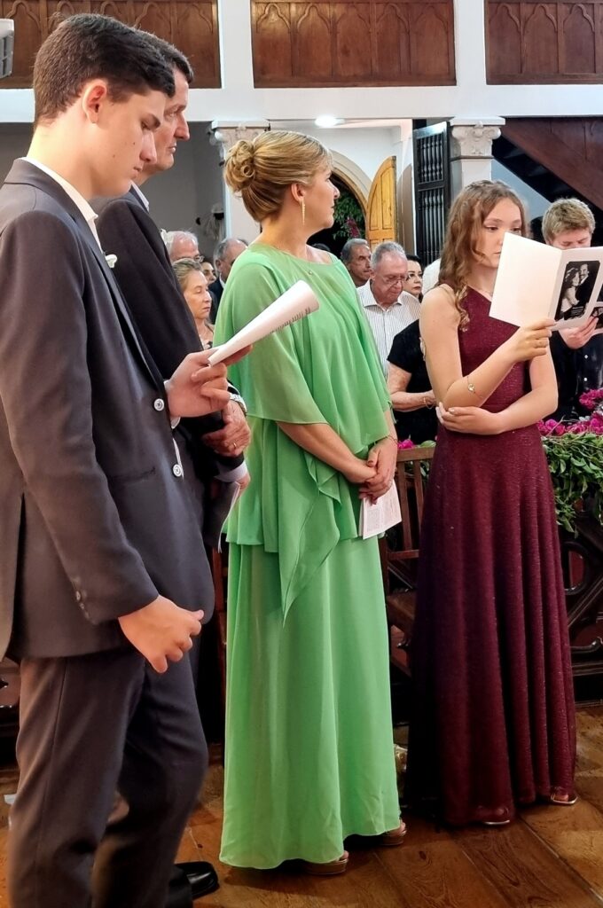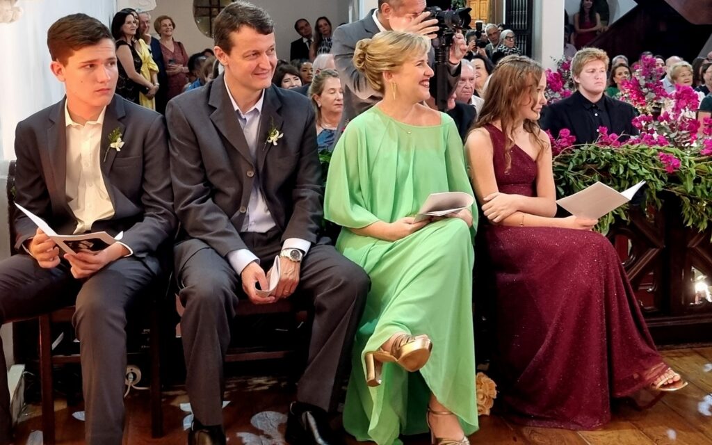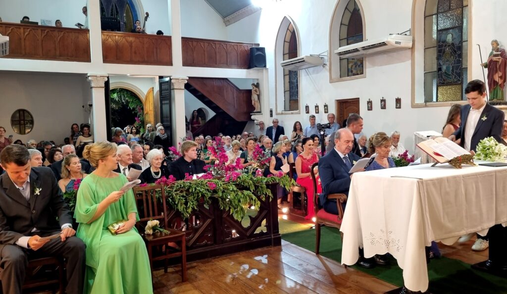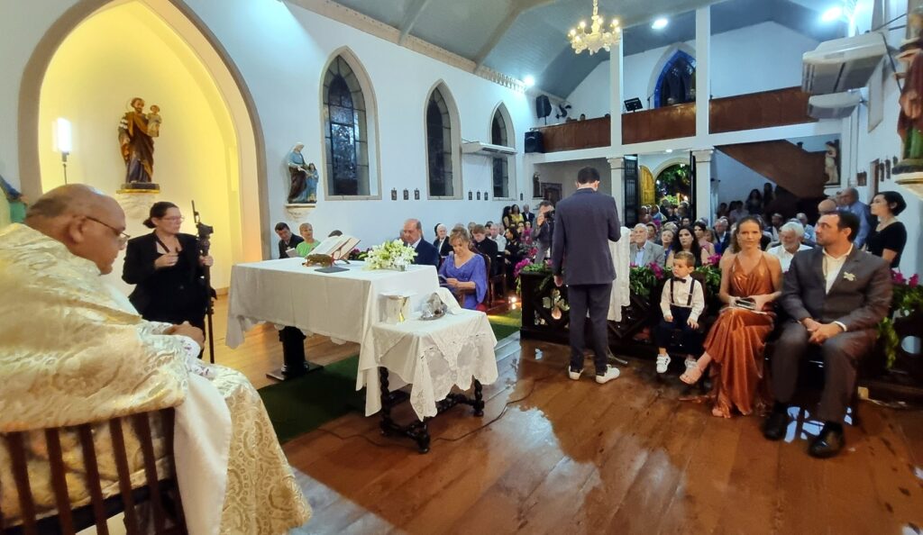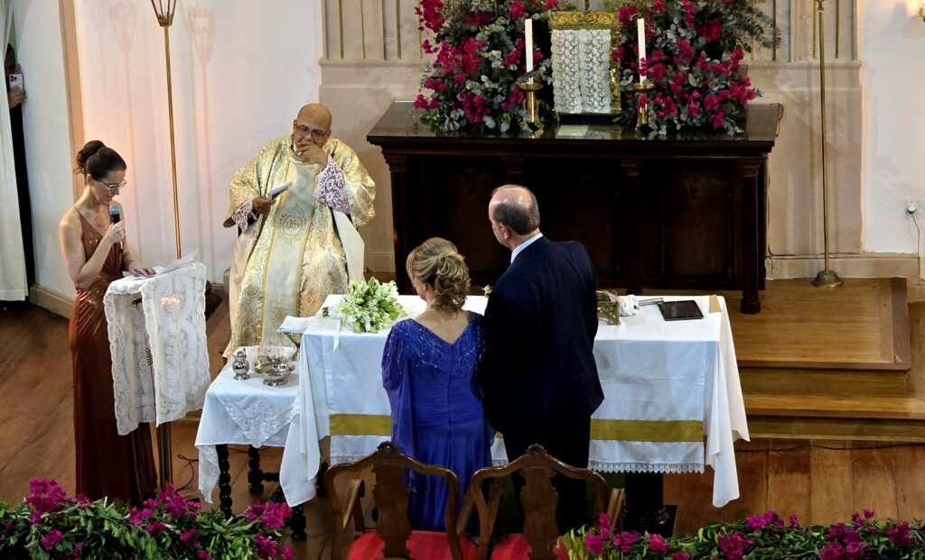 Adoramos a lembrança, as fotos estão maravilhosas, nos deliciamos com todos os detalhes. Desde a decoração da igreja , ainda vazia, até a celebração onde a música de vcs brilhou e a família participou intensamente ! Obrigado por tudo! Recebam nosso abraço carinhoso!